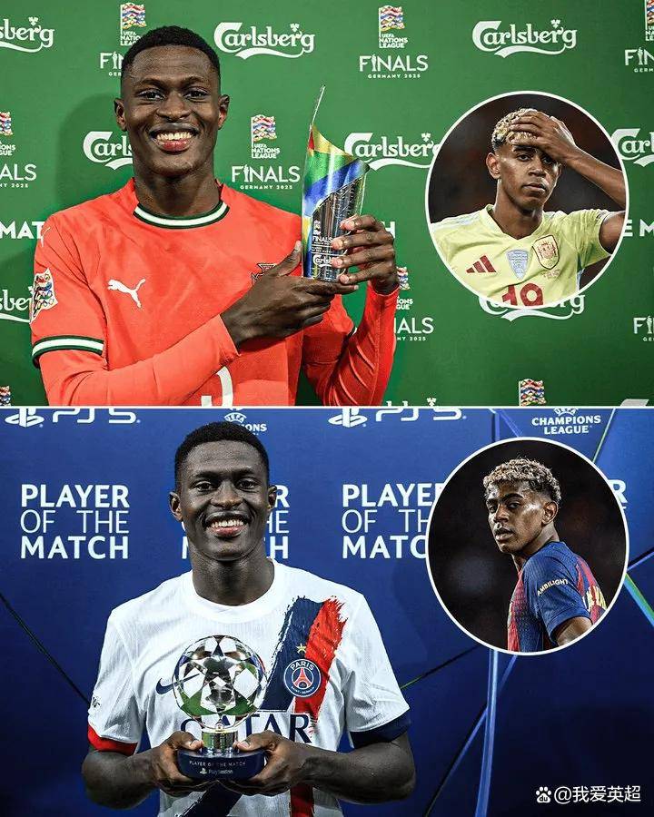 这已经是门德斯最近2次与亚马尔的直接对话中,都笑到最后,并且当选最佳球员。上一次是4个月前的6月9日欧国联决赛,可以说门德斯已经成为亚马尔生涯最怵的左后卫了。